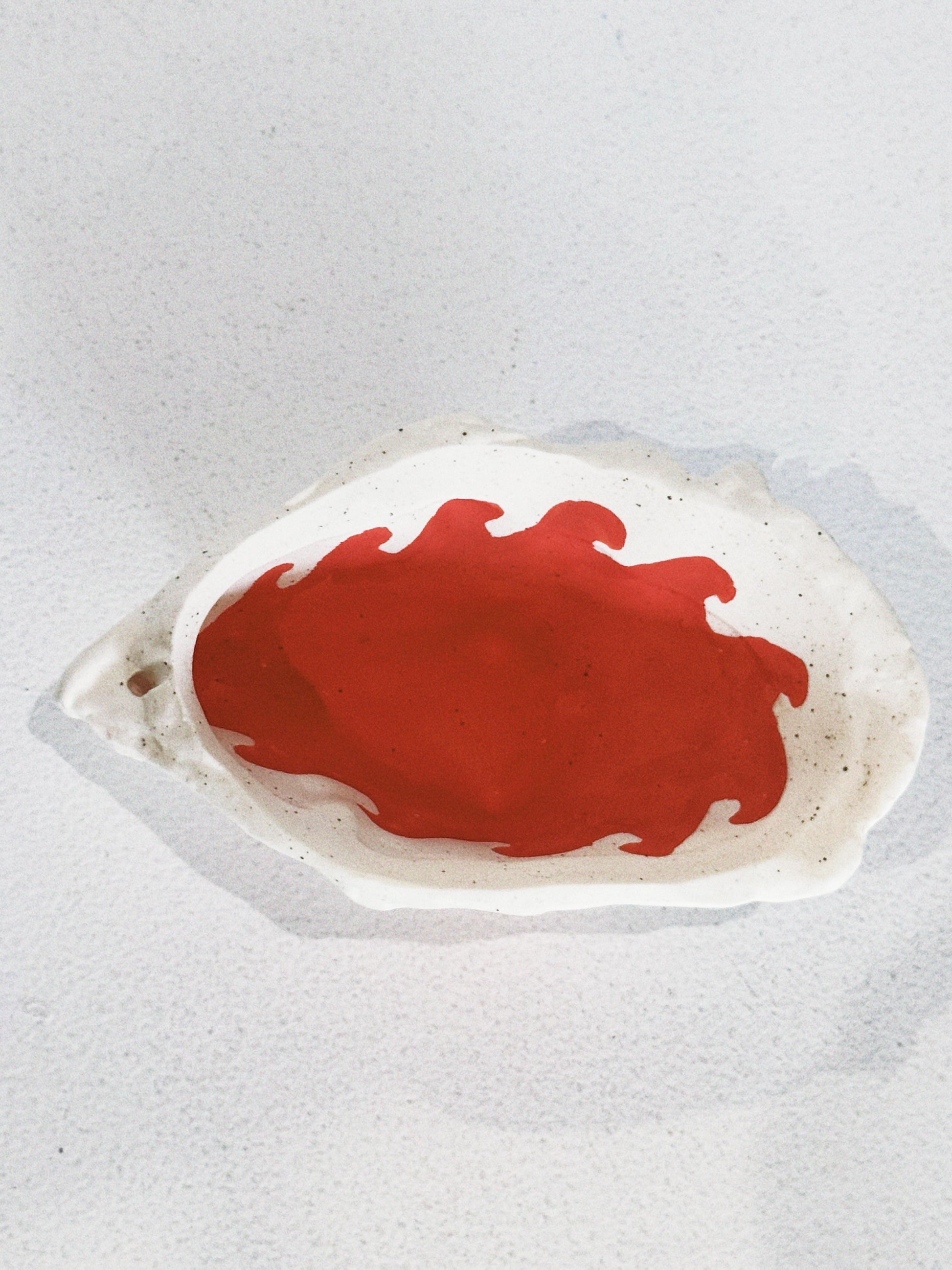 1 OF 1, A ceramic oyster shaped incense holder hand painted and sketched by Lottie of all the cute things!