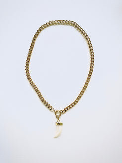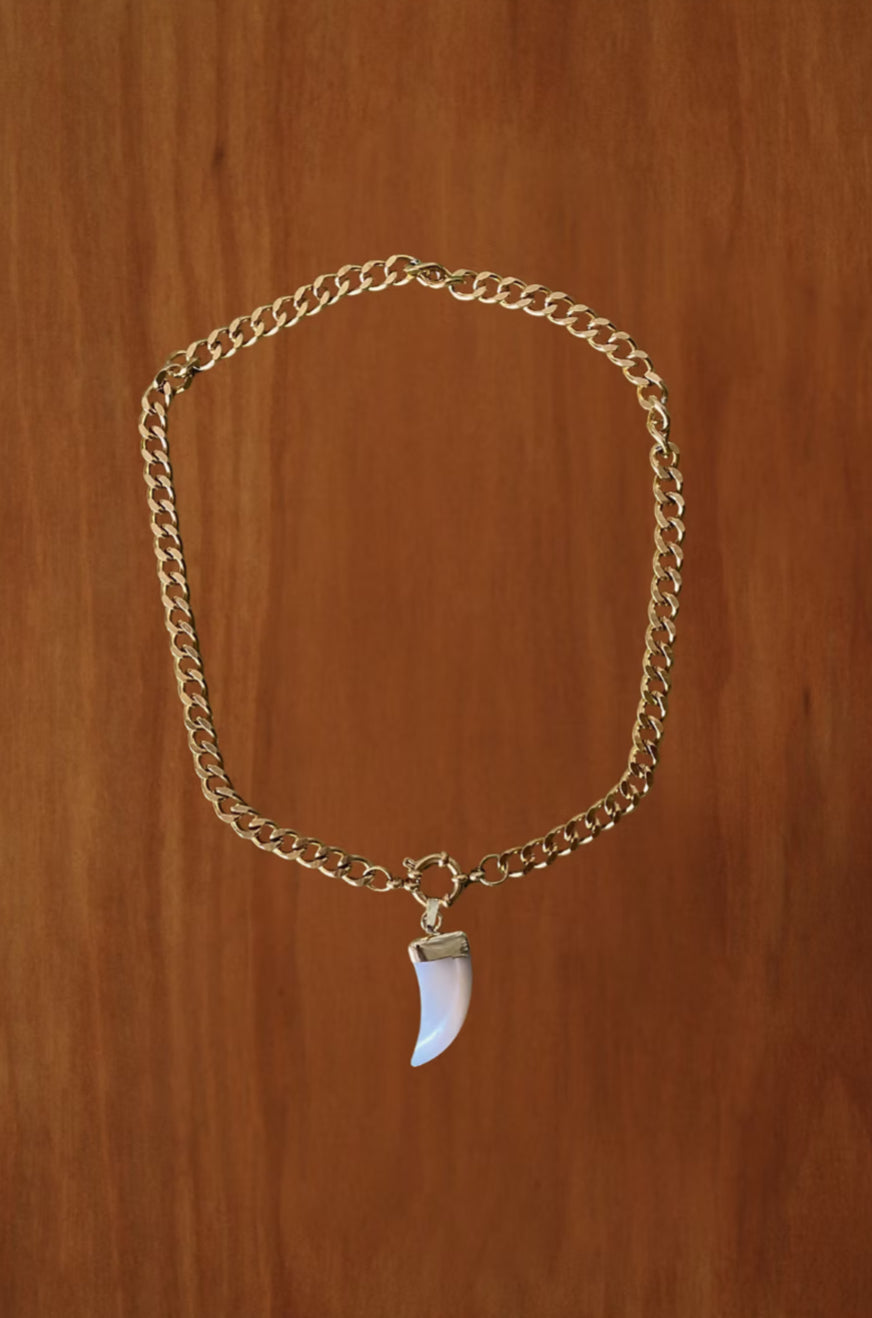 Mother of pearl tooth shaped pendant & stainless steel 18k gold electroplating chain.