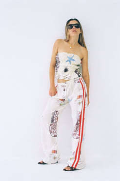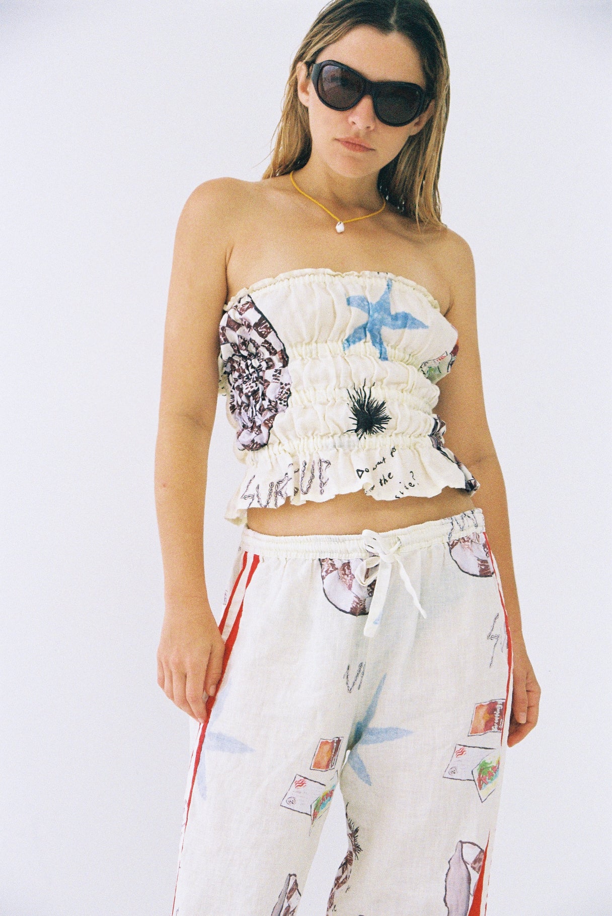 A femme Boob Tube with gathers in all the right places. Elasticised triple waist gathered panels starting from under bust to waist. In the “Souvenir Print” - originally a canvas painted by Lottie, the artwork then digitally printed onto Fabric.