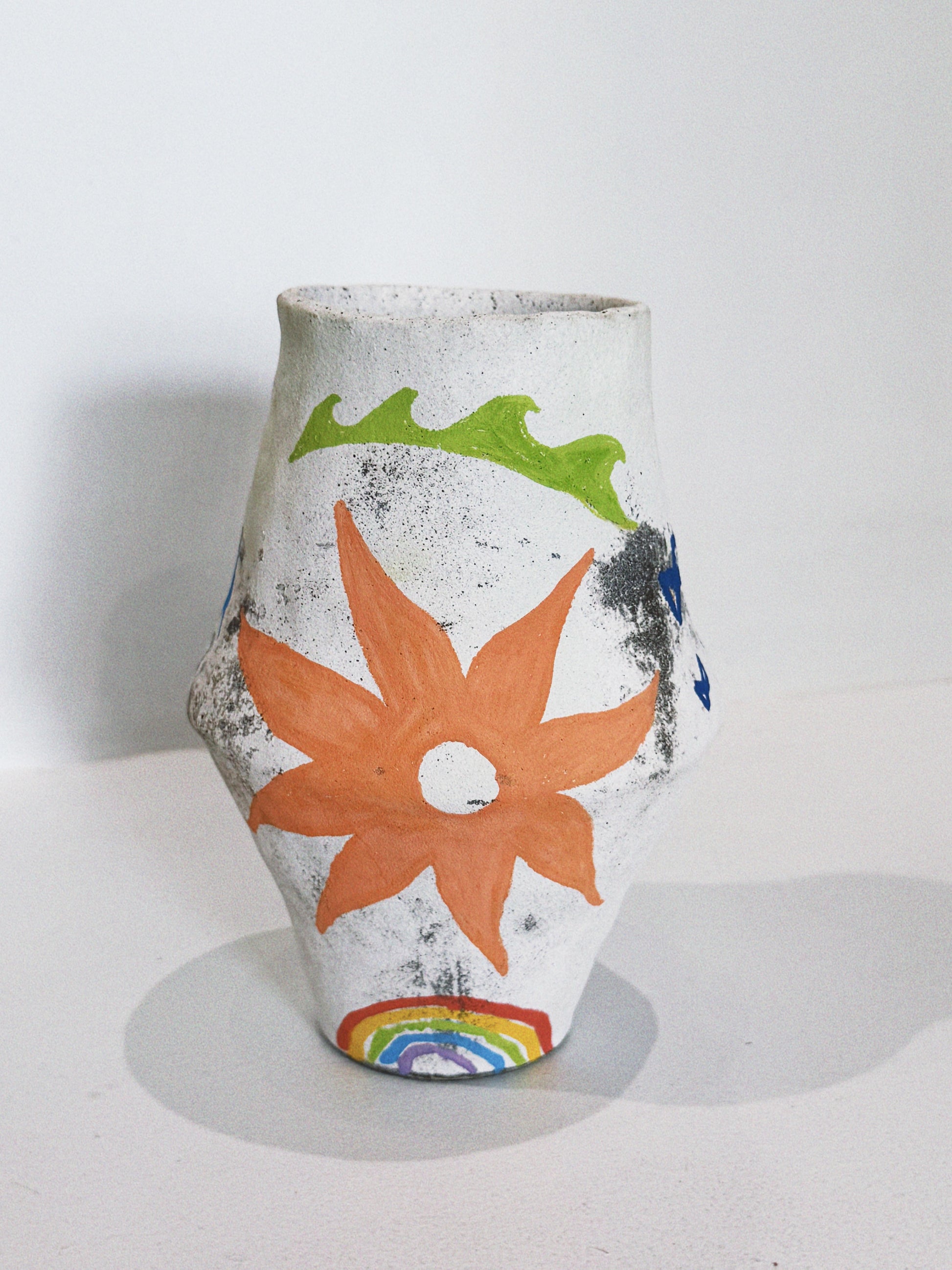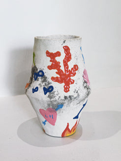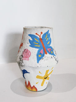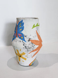 1 of 1 - A tall Vase with antique finishing, hand painted and sketched ART By Lottie Hall